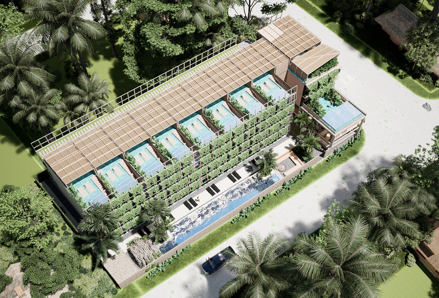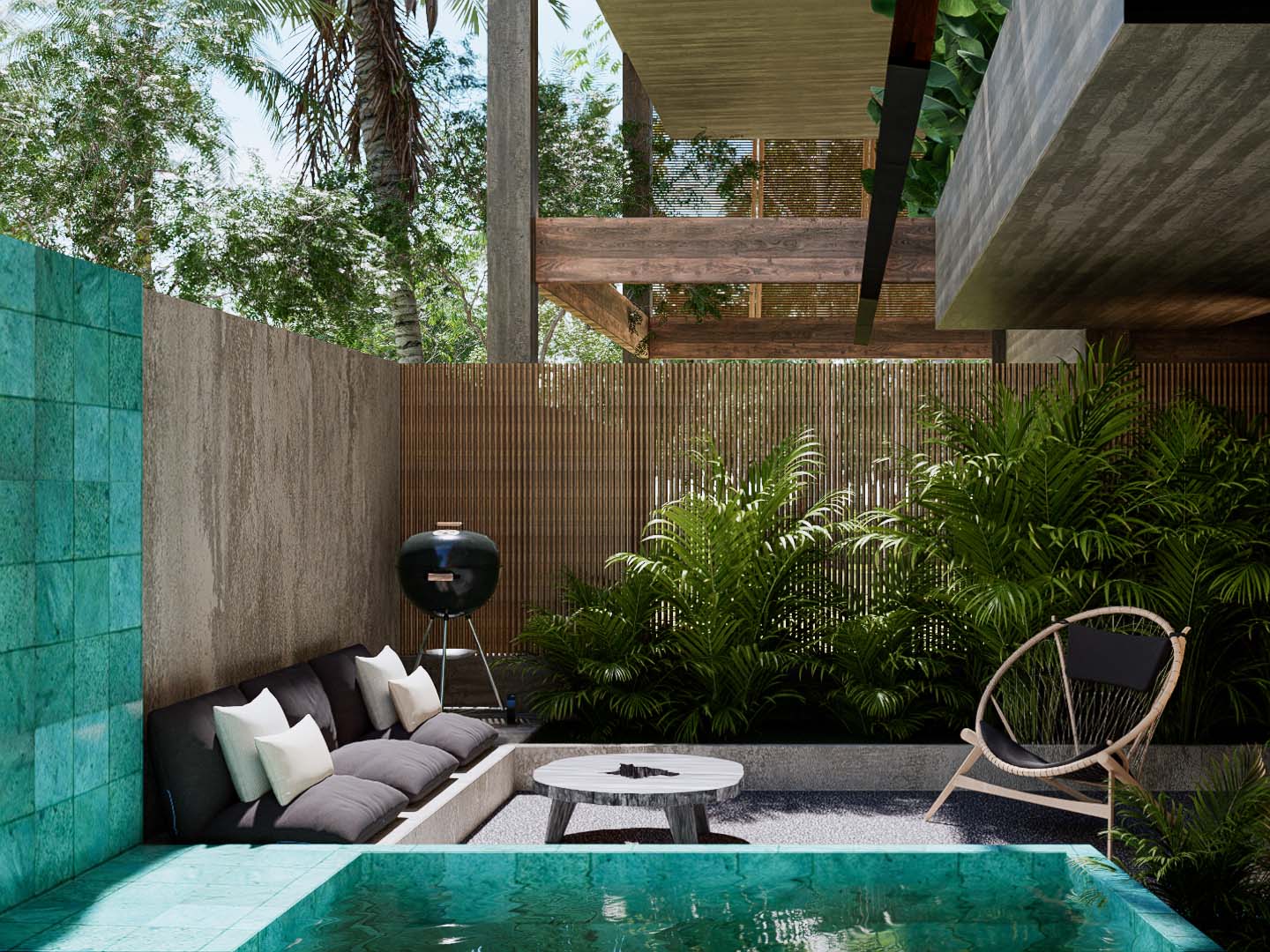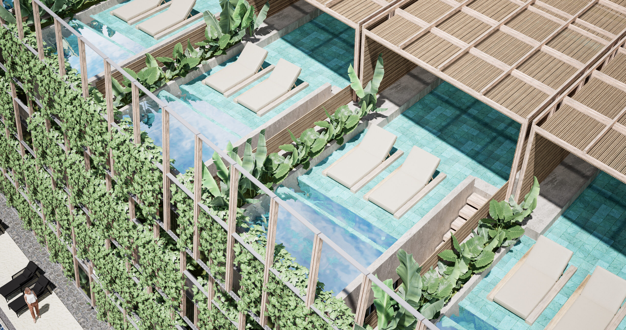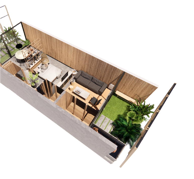 Unidades con mayor privacidad, ubicados en 1er y 2do piso. Cuentan con terraza. Swim up desde la ducha de tu baño a la mini piscina privada en la terraza.