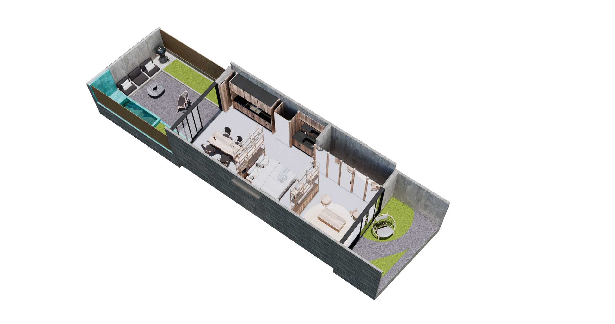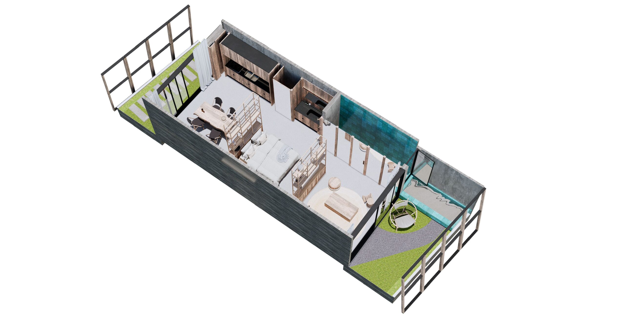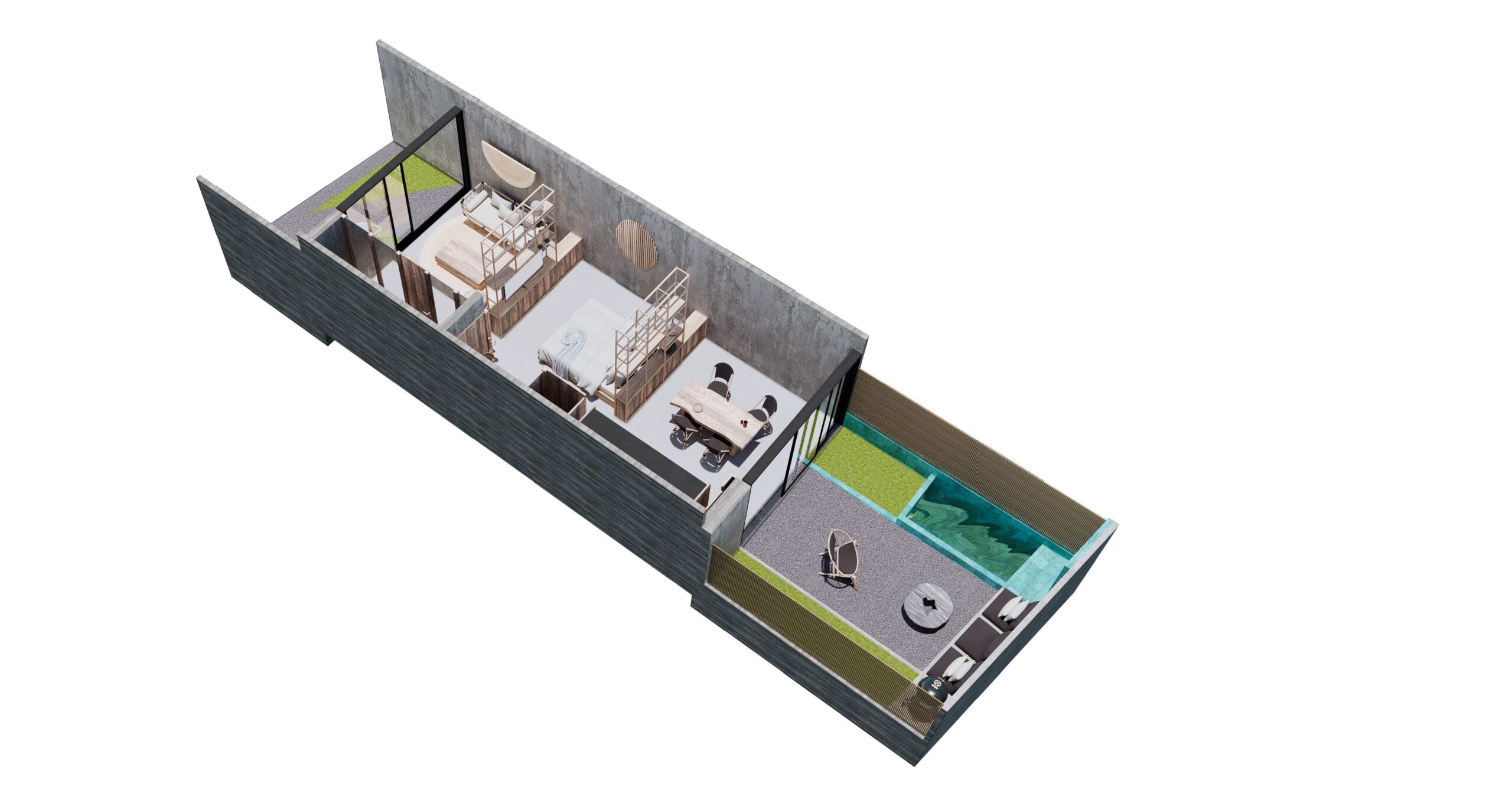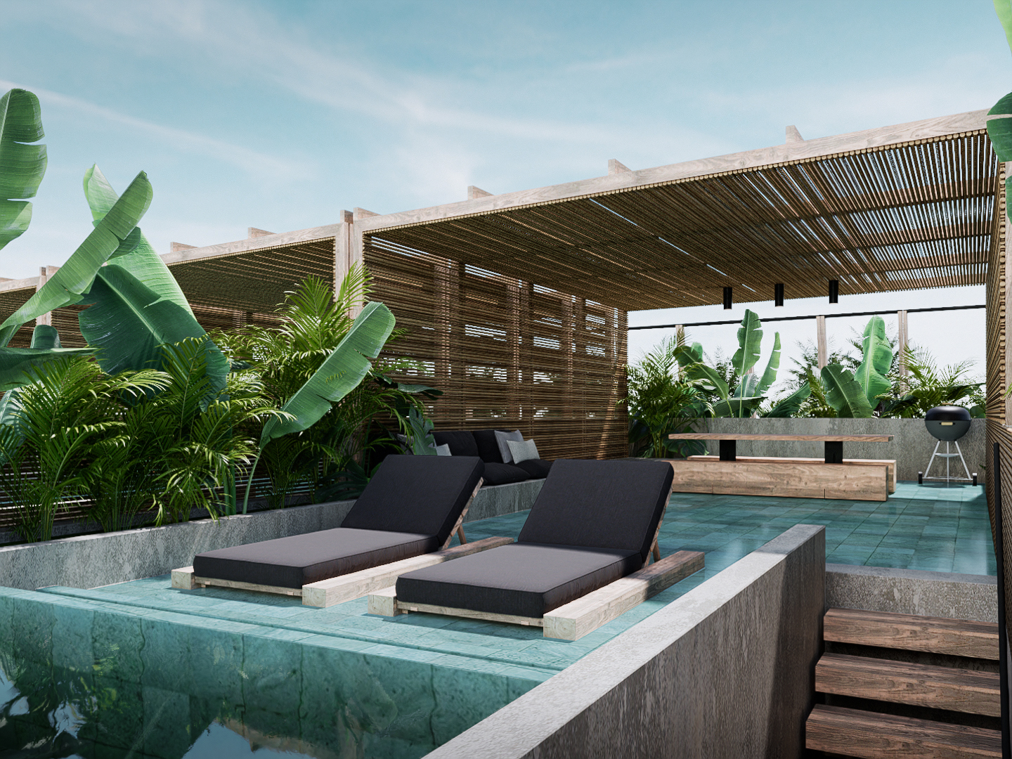 Unidades con mayor privacidad, ubicados en 1er y 2do piso. Cuentan con terraza. Swim up desde la ducha de tu baño a la mini piscina privada en la terraza.